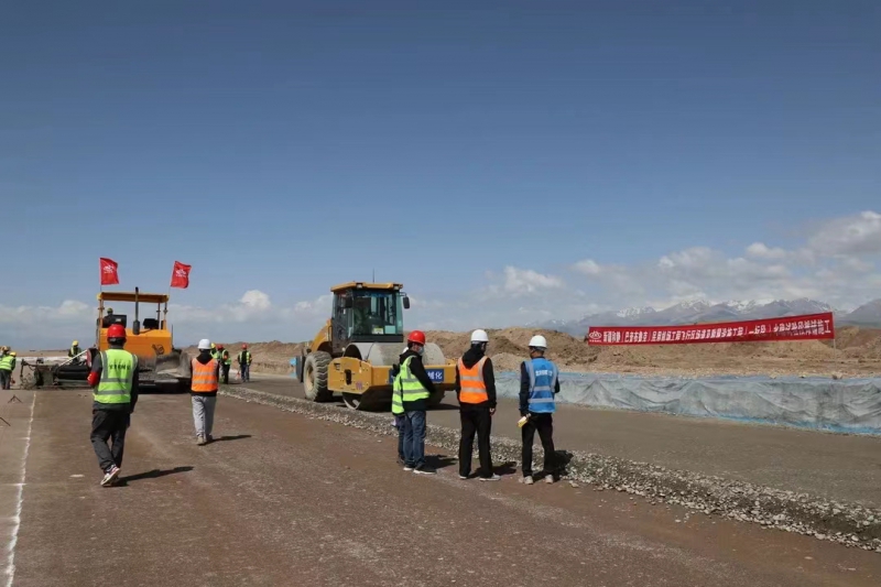 5月28日,伴隨著第一車水泥穩定砂礫混合料緩緩倒入攤鋪機料斗,標志著由我司承建的新疆和靜(巴音布魯克)機場飛行區跑道水穩基層試驗段施工正式拉開序幕。